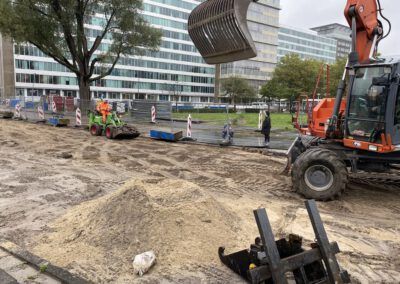 Vanuit het SOK contract voeren we voor stadsdeel West deze werkzaamheden uit. Het gehele straatwerk en inrichting van het groenwerk wordt opnieuw ingedeeld. Tevens hebben wij hier een deel van het rioolwerk uitgevoerd en wordt het gehele plantsoen voorzien van nieuwe verlichting. Buiten het uitvoeren van de werkzaamheden buiten zijn wij in nauwe samenwerking met de gemeente bezig om de juiste faseringen toe te passen om toch de bereikbaarheid en veiligheid van de bewoners en ondernemers te waarborgen. De werkzaamheden zijn nog bezig en zullen medio April afgerond worden.