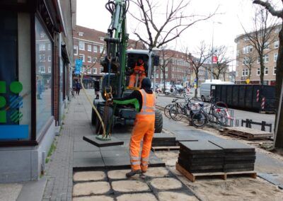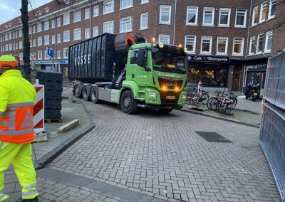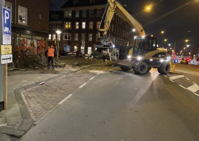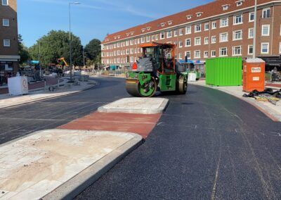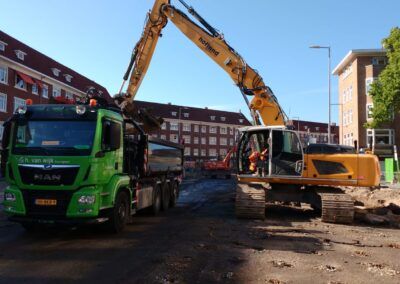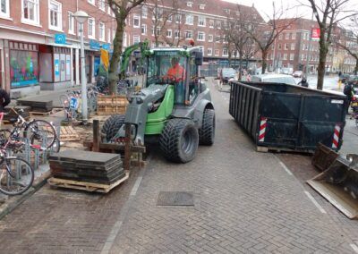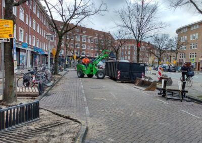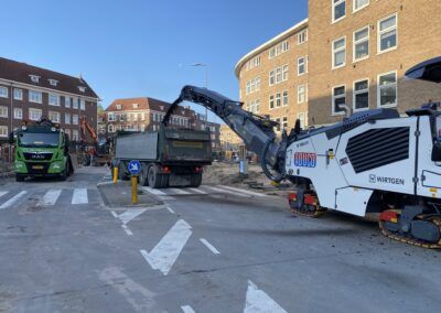 Hierbij is een deel van het werk gesaneerd, vanwege asbestvervuiling in de ‘oude’ wegfundering, conform de BRL7000. Vervolgens is de gehele straat voorzien van nieuwe gas- en waterleiding, daarnaast is ook het rioolstelsel deels vervangen. Het straatwerk is volledig vernieuwd en er zijn nieuwe plantenbakken van cortenstaal geplaatst met nieuwe beplanting. Tot slot is het asfalt van de rijbaan en het fietspad aangebracht en is deze voorzien van markering. In samenwerking met de gemeente hebben we de werkzaamheden, waarbij veel ondernemers en veel verschillende disciplines aan het werk zijn geweest, tot een succes weten te brengen. Door goede samenwerking en communicatie met de buurt en de inzet van elektrisch materieel en vakbekwaam personeel hebben we de werkzaamheden met zo min mogelijk overlast uit weten te voeren.