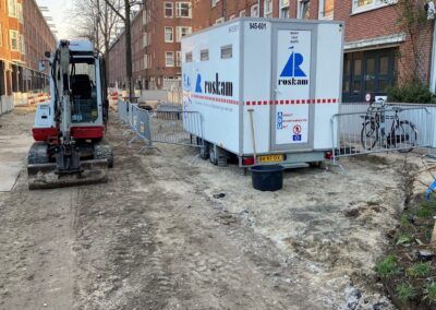 De grond in de Gillis van Ledenberchstraat is vanaf 0,9m onder het maaiveld verontreinigd. Daarom zijn er diverse werkzaamheden in saneringscondities uitgevoerd conform de BRL7000.