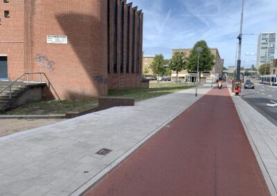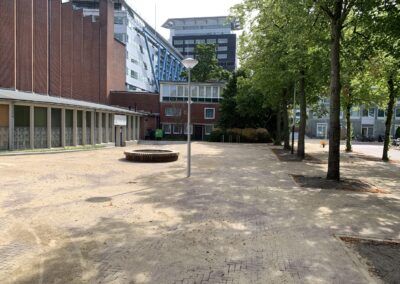 Afgelopen maanden hebben wij gewerkt aan de totaal vernieuwde inrichting van het maaiveld rondom de Kolenkitkerk. Naast de uitvoering hebben wij ook het ontwerp en het bestek verzorgd in samenwerking met de gemeente. Na een aantal maanden voorbereiding is samen met de architect vanuit de gemeente een ontwerp tot stand gekomen, waarbij we tevens de berekeningen van de constructies hebben verzorgd in samenwerking met onze vaste partner.