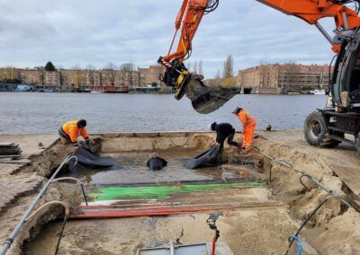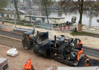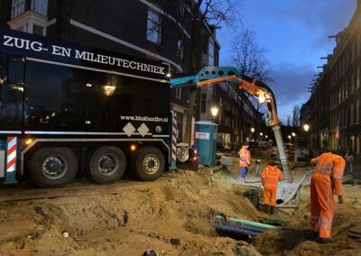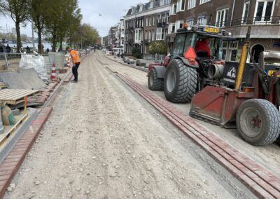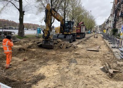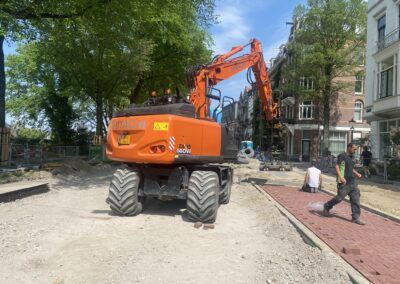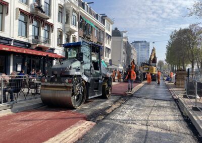 De werkzaamheden bestaan uit het volledig verwijderen van het straatwerk en asfalt en fundering. Bij het opbreken zijn we een oude betonnen trambaan tegengekomen die ook volledig verwijderd moest worden om de overige werkzaamheden uit te kunnen voeren. Voor Waternet hebben we een hemelwaterriool aangebracht en zijn alle huisaansluitingen (zowel hemel- als vuilwater vervangen). In dit rioolwerk zat tevens het aanbrengen van een overstort richting de Amstel, dit was het meest uitdagende gedeelte van het rioolwerk. Op het eerste gedeelte van het project is de drinkwaterleiding door ons vernieuwd. Na de ondergrondse werkzaamheden is het straatwerk opnieuw aangebracht, waarbij veel natuursteen toegepast moest worden. Daarnaast zijn de lichtmasten vernieuwd en toekomstbestendig opgeknapt.