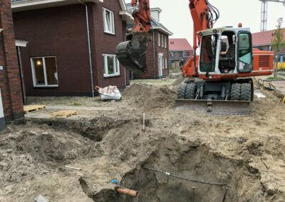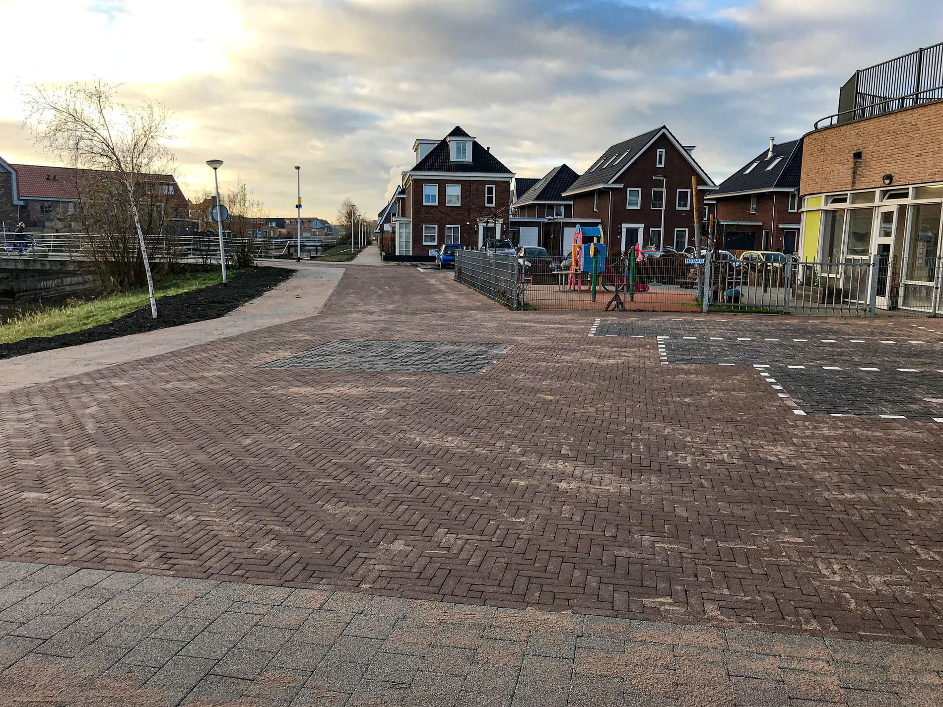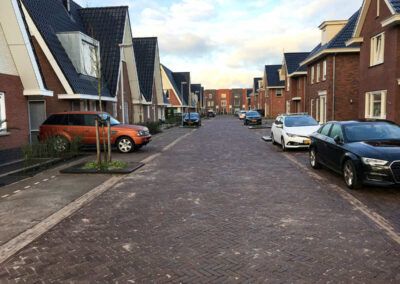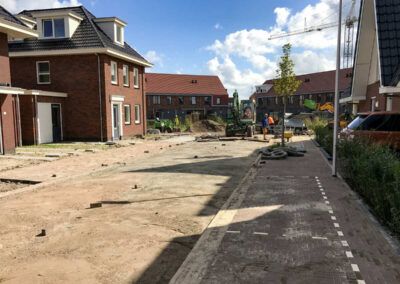 Nadat we eerst de bestaande, tijdelijke verharding hadden opgebroken, zijn de huisaansluitingen gerealiseerd. Om vervolgens de benodigde funderingslagen aan te brengen waarop we de elementenverharding hebben aangebracht. Gezien het feit dat een lange straat binnen het projectgebied is gelegen aan een schoolgebouw, moesten de werkzaamheden in de schoolvakantie en ook nog eens binnen drie weken worden uitgevoerd. Iets wat ons gelukt is door de goede voorbereiding en planning van dit project. Een proces wat bovendien door een certifiërende instantie werd getoetst en akkoord bevonden, waarmee we binnen dit werk ook onze BRL 9334 certificering hebben behaald.